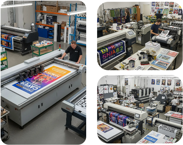 We employ state-of-the-art printing and advertising machineries to deliver vibrant, high-quality results. Our equipment includes digital printers, offset machines, large-format printers, and finishing tools that bring every design to life with precision. These advanced technologies enable us to handle everything from brochures and banners to customized promotional materials efficiently. With reliable machinery and skilled expertise, we ensure every project reflects creativity, clarity, and lasting impact.